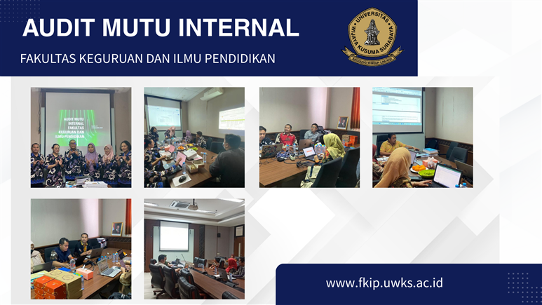 Pelaksanaan Audit Mutu Internal (AMI) Program Studi Pendidikan Bahasa Indonesia, Pendidikan Bahasa Inggris, Pendidikan Matematika, Pendidikan Biologi, Pendidikan Guru Sekolah Dasar, Pendidikan Profesi Guru, dan Fakultas Keguruan dan Ilmu Pendidikan (FKIP) yang dilaksanakan oleh Badan Penjaminan Mutu (BPM) di Universitas Wijaya Kusuma Surabaya (UWKS). AMI merupakan tahapan Evaluasi dalam siklus Penetapan, Pelaksanaan, Evaluasi, Pengendalian, dan Peningkatan (PPEPP) dalam Sistem Penjaminan Mutu Internal (SPMI) UWKS yang dilaksanakan pada akhir Tahun Akademik 2024/2025 yang rutin diselenggarakan oleh BPM pada setiap bulan Nopember dan tercantum dalam kalender akademik UWKS.